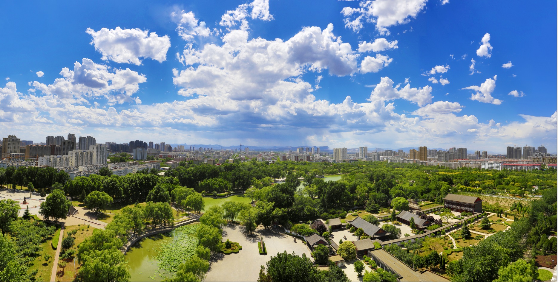 圖2:近年來,邢臺市主城區(qū)空氣質(zhì)量持續(xù)好轉(zhuǎn)。圖為邢臺市達(dá)活泉公園鳥瞰。(邢臺日報(bào)社全媒體記者 黃濤 攝)