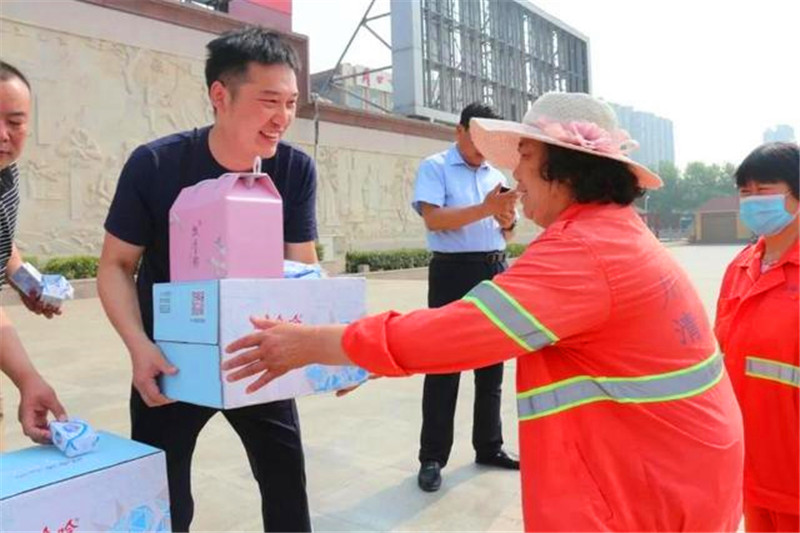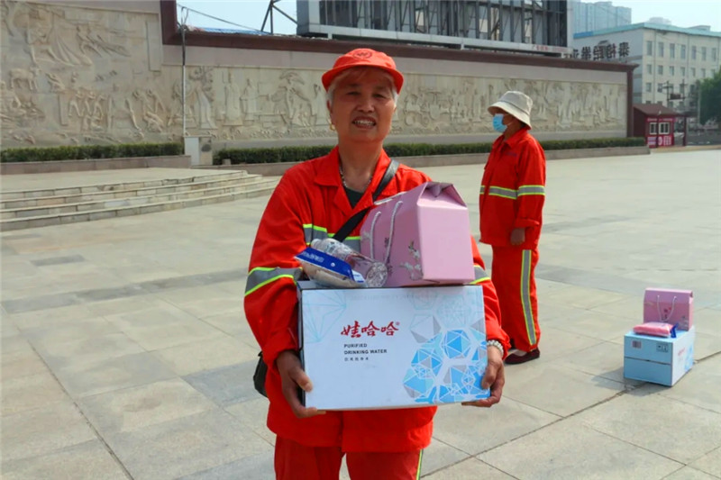 此次活動(dòng),中原眾恒集團(tuán)為100余名環(huán)衛(wèi)工人代表送去精心準(zhǔn)備的粽子禮盒、礦泉水、毛巾、香皂等慰問品,并向在高溫酷暑下辛勞工作的一線環(huán)衛(wèi)工人致敬,感謝他們?yōu)橹芸诔鞘协h(huán)境衛(wèi)生所做出的貢獻(xiàn)。