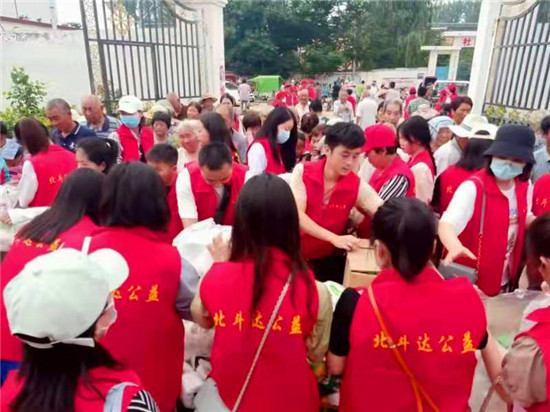 不一會兒,在志愿者組織下,來到現(xiàn)場的老人們便依次排隊領取了物品,滿臉充滿笑容?!懊看温犝f北斗達的孩子們過來給我們包餃子吃,我都高興得一宿睡不著覺。得知今天孩子們給我們送餃子和粽子吃,我就起了個大早,別提心里多高興了?!?5歲村民李大爺手提著領到的水餃和粽子高興地對記者說。