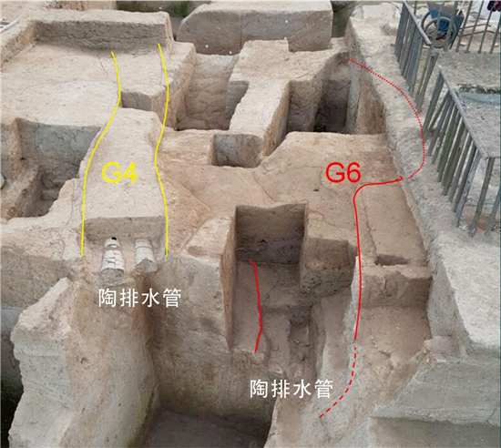 上世紀(jì)80年代,考古工作者在南城門路土下發(fā)現(xiàn)一組由三根管道組成呈倒“品”字形的陶排水管道,鋪設(shè)管道的溝北高南低,有一定坡度,易于從城內(nèi)向城外排放污水。這種在如今看來非常常見的利用地勢排水的方式,在當(dāng)時看來,可是一項相當(dāng)了不起的杰作,體現(xiàn)了我們的先民在城建上的創(chuàng)建精神。