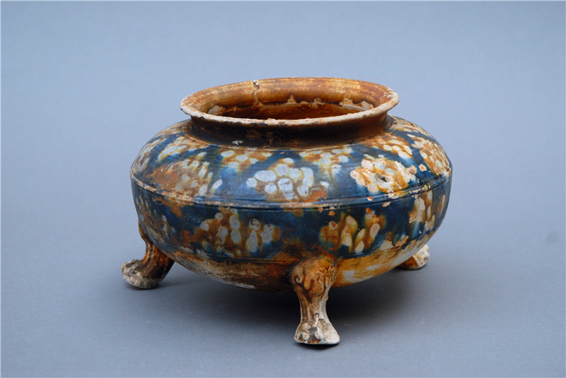 唐代藍(lán)釉三彩爐圖片