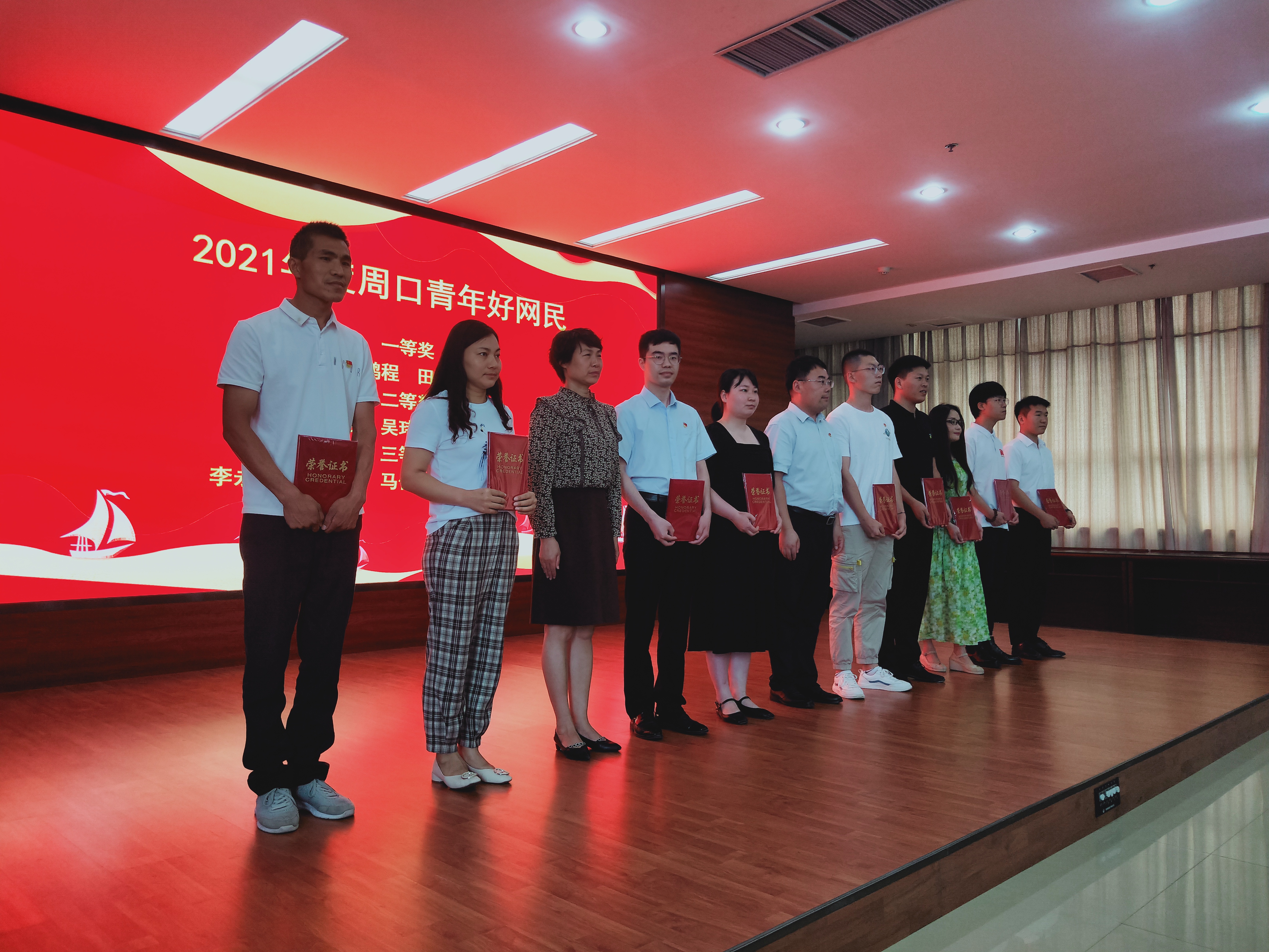 啟動儀式上,展播了“百年風華心向黨”優(yōu)秀短視頻,向“2021年周口青年好網(wǎng)民”獲得者頒獎,獲獎代表太康縣“80后白發(fā)校長”張鵬程、西華縣“最美赤腳女教師”田月艷、太康縣團委王嘉文發(fā)言。周口報業(yè)傳媒集團、周口廣播電視臺等6家單位被授予“周口好網(wǎng)民工作室”牌匾。