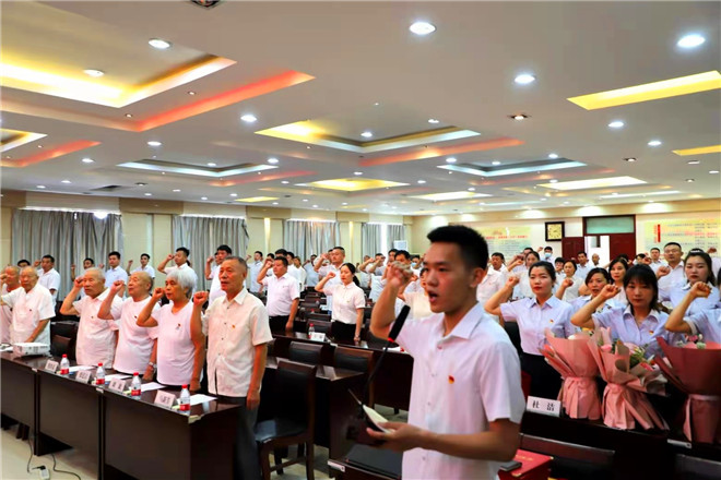 大會在莊嚴(yán)的國歌聲中拉開序幕。隨后,全體黨員以滿腔的熱情,面向黨旗,重溫入黨誓詞。黨旗熠熠生輝,誓言鏗鏘有力,展現(xiàn)了新時代電力人為黨的事業(yè)奮斗終生的信心和決心。