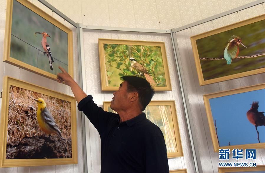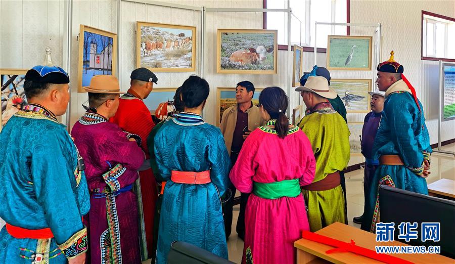 6月7日,廷·巴特爾介紹他在草場(chǎng)拍攝的野生鳥(niǎo)類(lèi)照片。 新華社記者 恩浩 攝