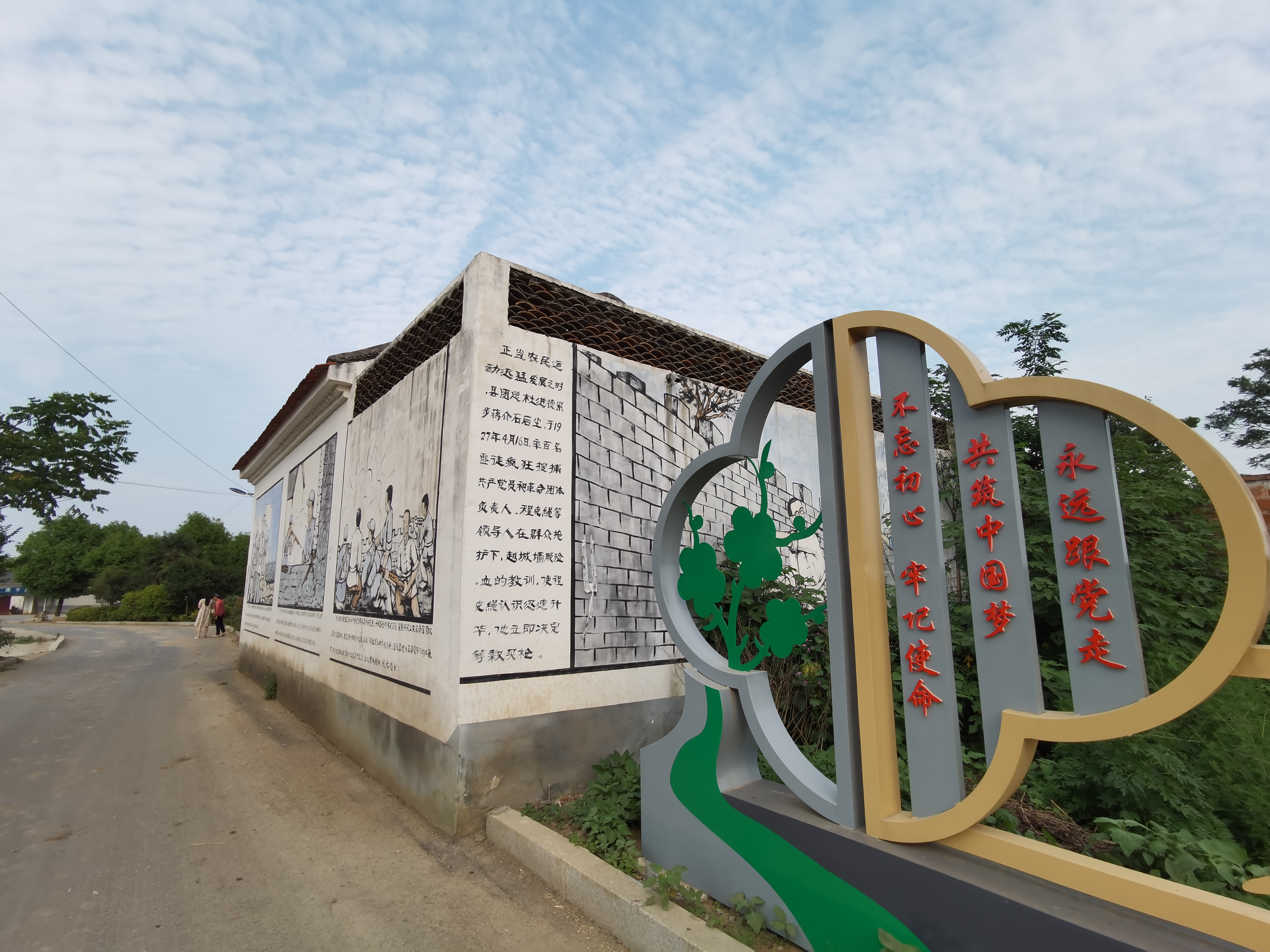 時空轉(zhuǎn)換。程克繩等革命先烈戰(zhàn)斗過的紅色熱土,已經(jīng)發(fā)生了翻天覆地的變化。行走在程坡村,只見硬化過的村道平坦、干凈,道路兩邊綠樹成蔭、鮮花綻放,農(nóng)房整修一新,墻上彩繪再現(xiàn)了程克繩光輝事跡的故事場景,村里三三兩兩的老人,聚在樹蔭下拉家?!?/p>