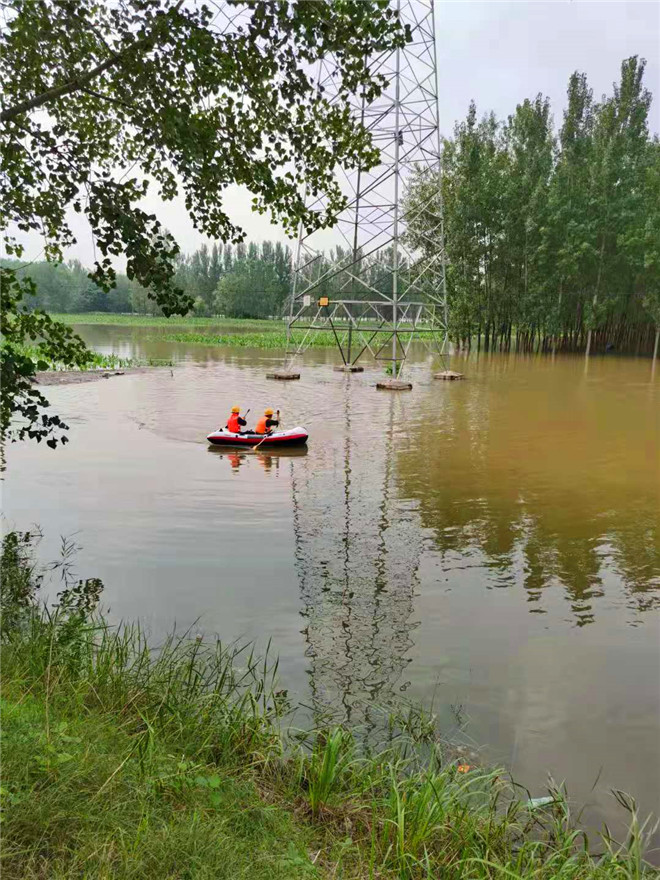 為了確保周口主網(wǎng)高壓線路安全穩(wěn)定運(yùn)行,連日來(lái),“小毛”毛學(xué)用和他的同事克服困難劃著皮劃艇,人工近距離檢查桿塔基礎(chǔ)泡水情況。