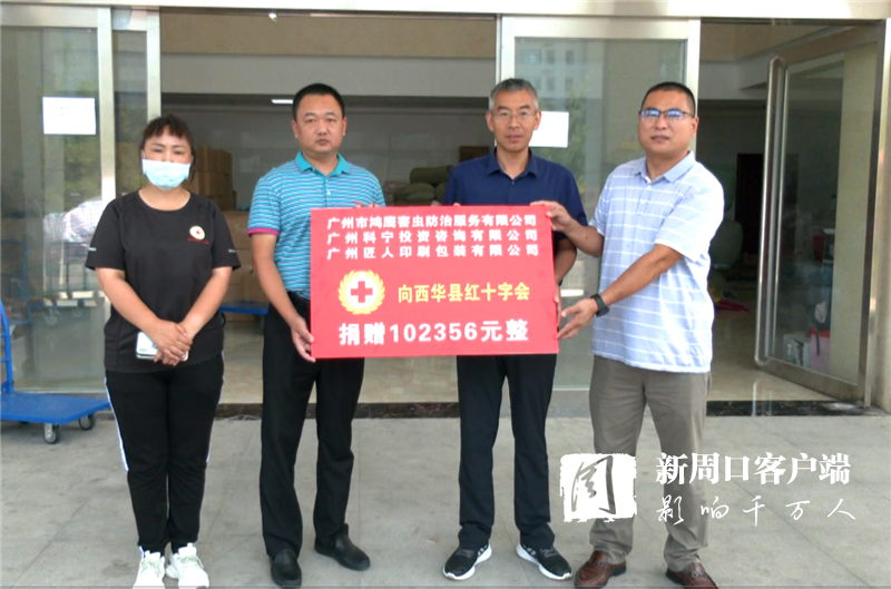 令人意想不到的是,其實早在7月29日,許金山就受廣州市鴻鷹害蟲防治服務(wù)有限公司委托,向西華縣紅十字會捐獻善款10萬余元。