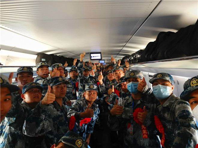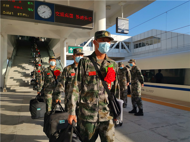 披紅綬帶,胸佩光榮花。候車大廳內(nèi),經(jīng)過(guò)役前訓(xùn)練的新兵們已經(jīng)有了“兵樣子”,站姿挺拔,整齊列隊(duì),戎裝待發(fā)。根據(jù)疫情防控要求,不再集中舉行送行送兵,新兵們將分批次從周口出發(fā),開啟他們的軍旅新征程。湯維政、張?jiān)鲗?duì)入伍新兵表示祝賀,對(duì)他們積極響應(yīng)祖國(guó)召喚,踴躍報(bào)名參軍,以實(shí)際行動(dòng)依法履行服兵役義務(wù)表示贊揚(yáng)。同時(shí)希望他們到部隊(duì)后,迅速投入新的生活,時(shí)刻嚴(yán)格要求自己,珍惜青春、安心服役,加強(qiáng)學(xué)習(xí)鍛煉,爭(zhēng)當(dāng)周口好兵,嚴(yán)守部隊(duì)紀(jì)律,苦練過(guò)硬本領(lǐng),努力把自己鍛煉成有靈魂、有本事、有血性、有品德的新一代革命軍人。