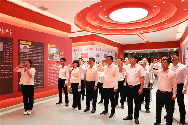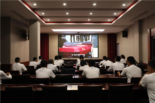 全體黨員面向黨旗集中宣誓,重溫入黨誓詞后,集中觀看學習黨史紀錄片《刀鋒》。