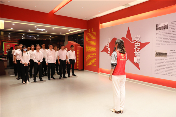 西華縣委黨員教育中心的紅色長廊里,一幅幅圖畫,一段段文字,見證著中國共產(chǎn)黨從誕生,到發(fā)展,到壯大,到帶領中國人民走向勝利的光輝歷程。通過志愿者講解員的精彩講解,全體黨員詳細了解了紅船精神、井岡山精神、長征精神、延安精神、西柏坡精神等色彩鮮明的紅色文化。