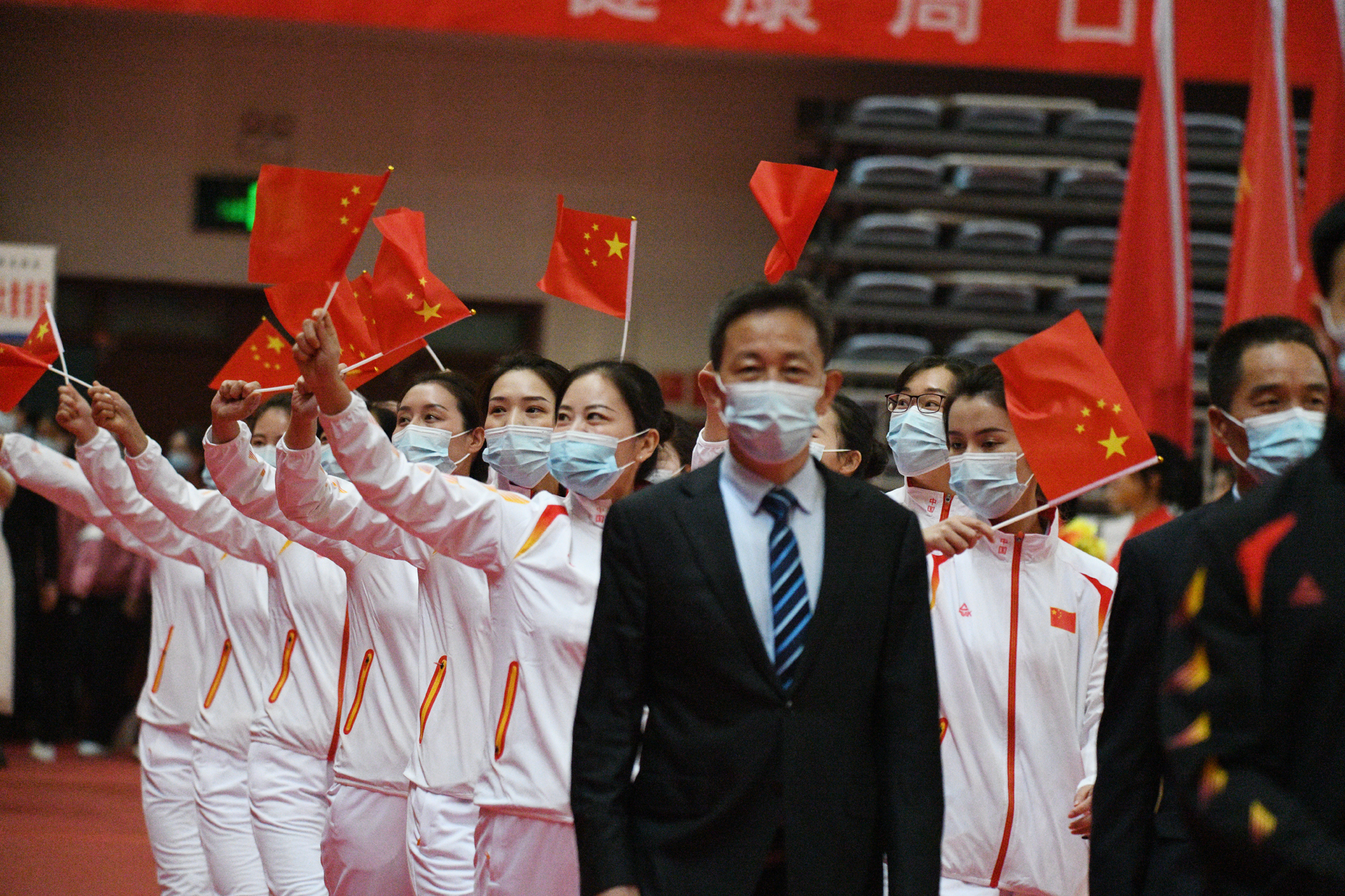女運動員們展示巾幗不讓須眉的奮進精神