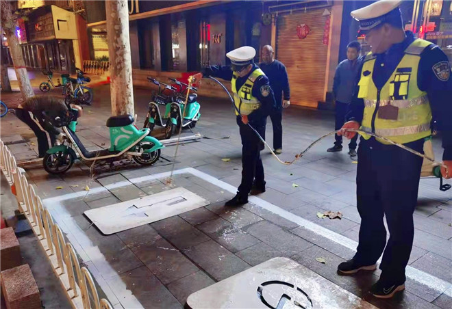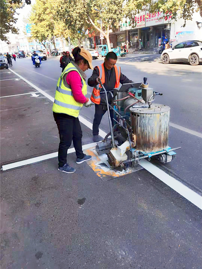 10月26日晚6時(shí)許,在周口大道與文體路交叉口附近,幾名工作人員正在使用熱熔畫線機(jī),對(duì)路面上不太清晰的斑馬線進(jìn)行重新施劃?!奥访鏄?biāo)線是公路的‘無言哨兵’,覆畫后的道路交通標(biāo)線醒目美觀,一方面消除了安全隱患,保障了交通安全和暢通,另一方面也極大地美化、扮靚了沿線路域環(huán)境,成為城市文明的一道風(fēng)景線?!痹撠?fù)責(zé)人說。