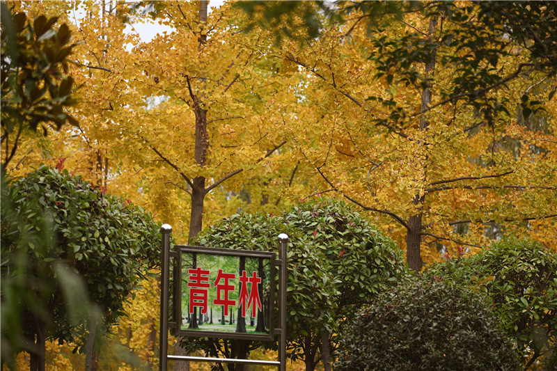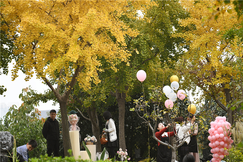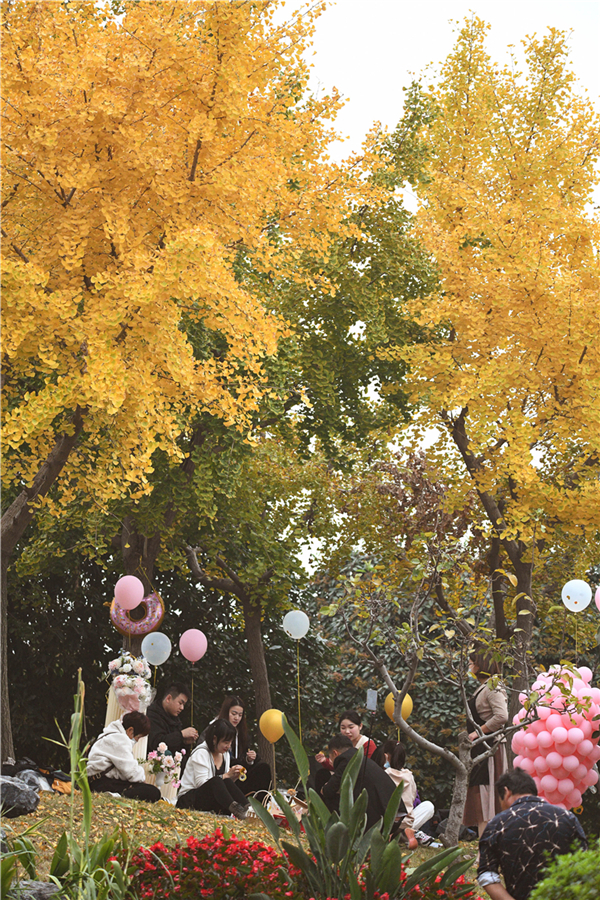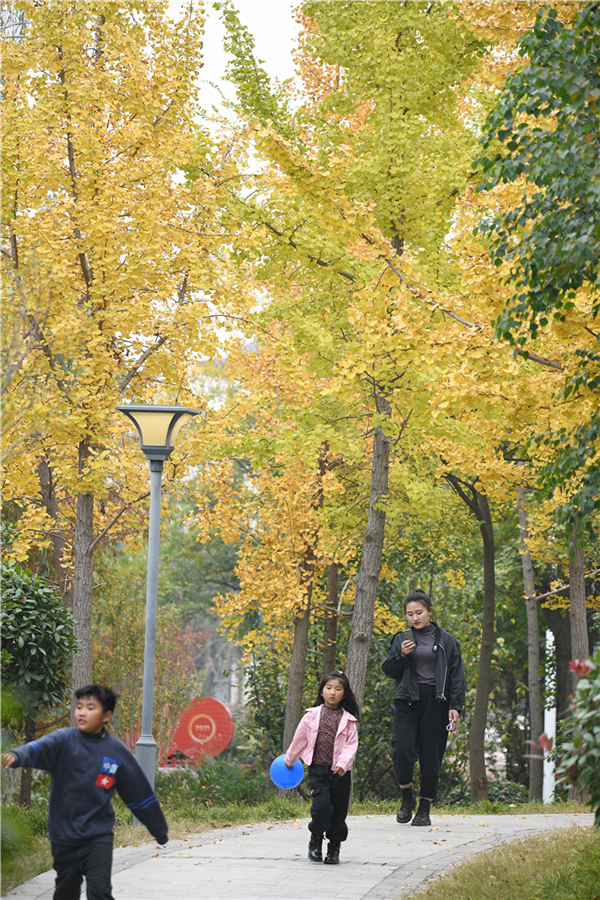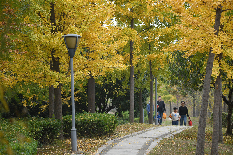 10月31日下午,周口公園的銀杏樹(shù)滿(mǎn)樹(shù)金黃、披金溢彩,在斑駁的綠樹(shù)、紅葉之間,格外美麗,吸引著周末休閑的居民們觀賞游玩。