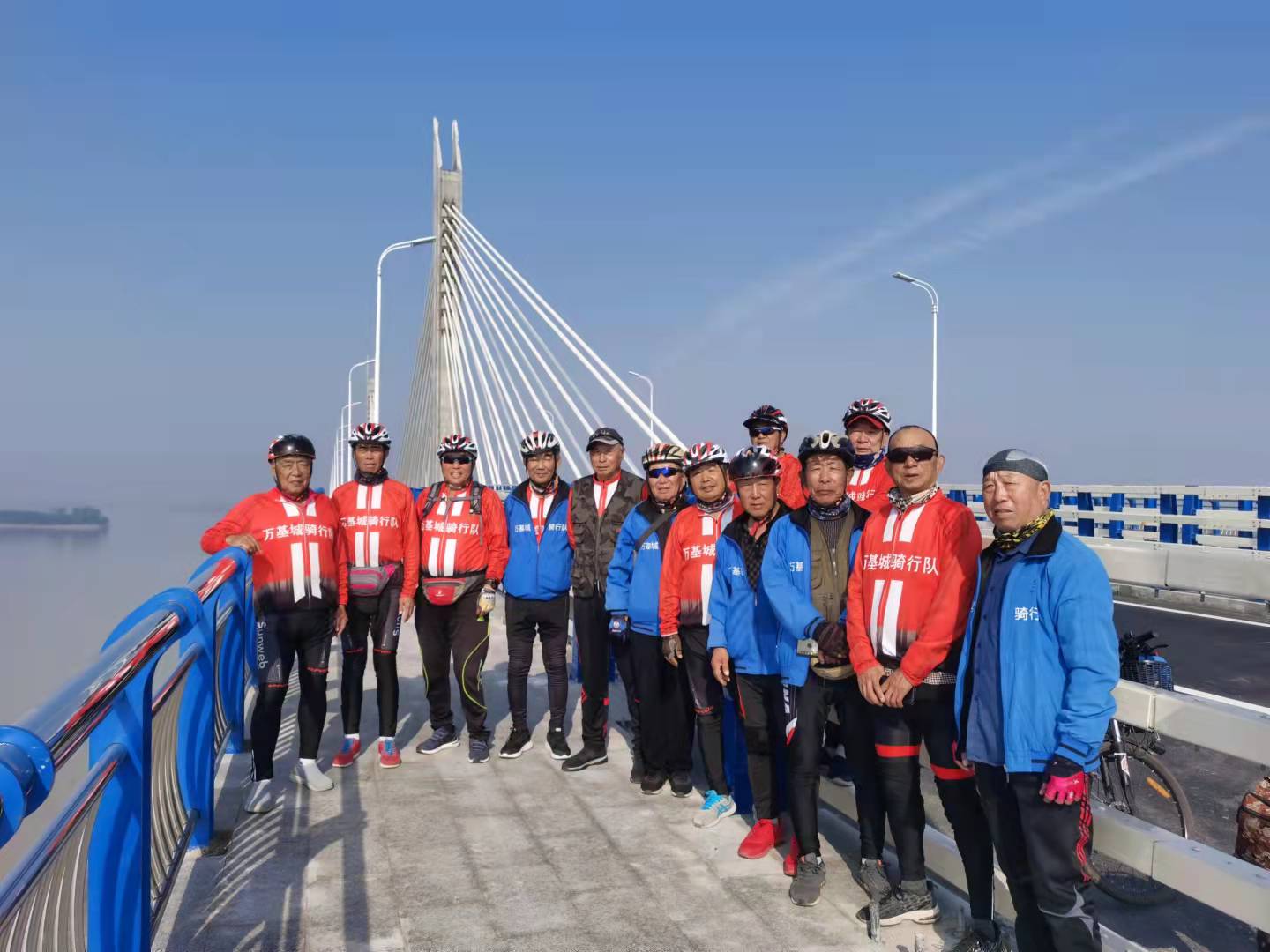 周口“馬扎子”老年騎行隊(duì)在瓦埠湖大橋