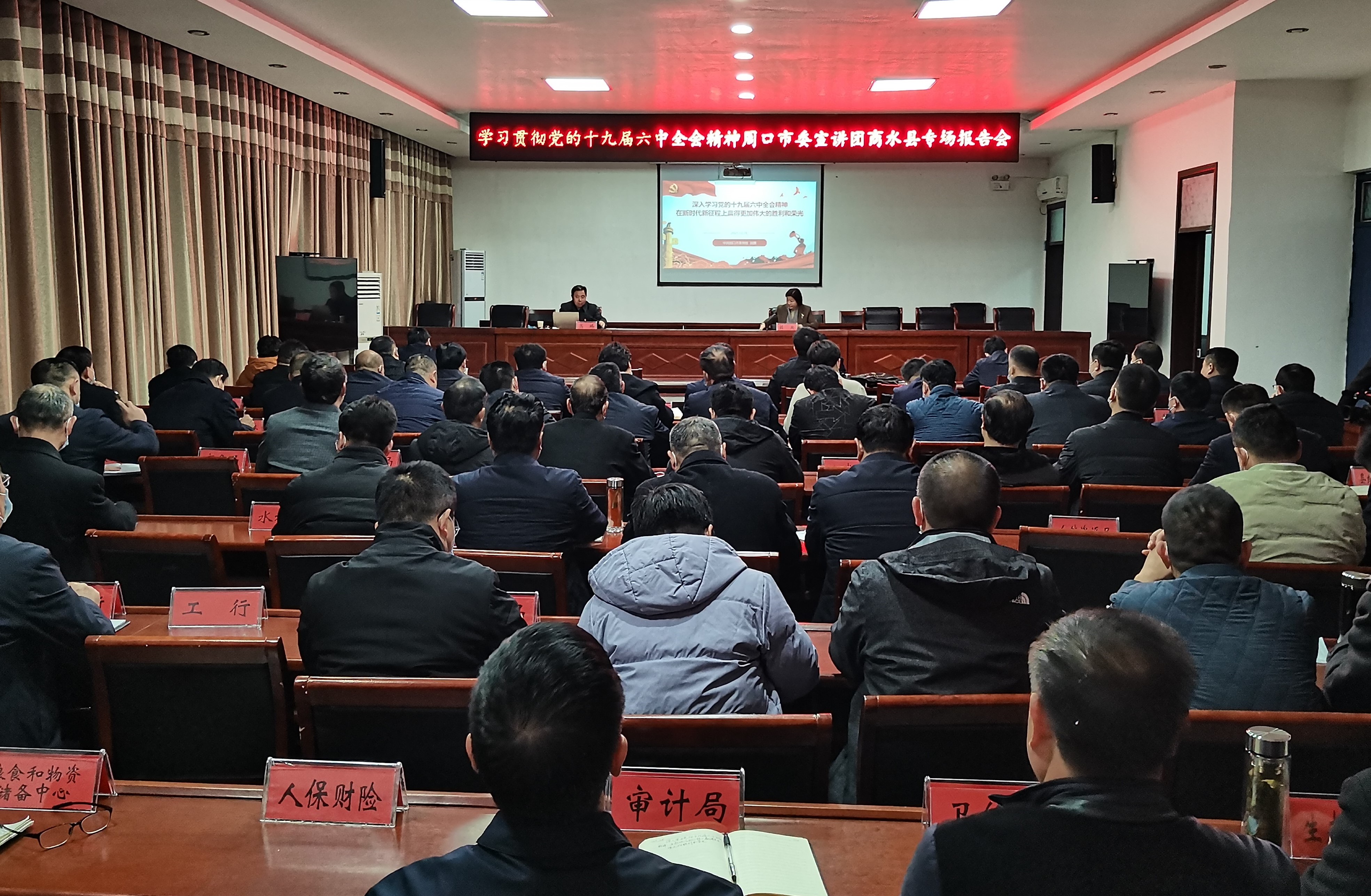 百年奮斗創(chuàng)輝煌,風(fēng)華正茂書華章。12月15日,學(xué)習(xí)貫徹黨的十九屆六中全會精神周口市委宣講團商水縣專場報告會舉行,市委宣講團成員高鵬作專題宣講報告,縣領(lǐng)導(dǎo)、鄉(xiāng)鎮(zhèn)辦事處和縣直單位主要負責人現(xiàn)場聆聽。