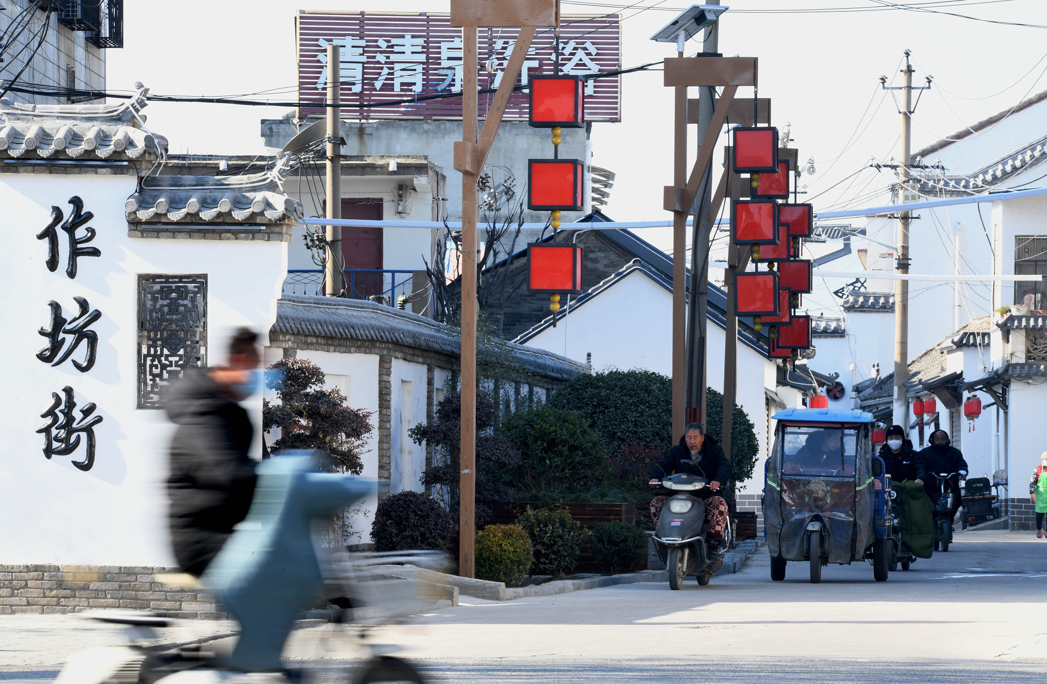 12月27日,市民騎車行走在作坊街。經(jīng)過兩個月的精心打造,中心城區(qū)作坊街改造于近日完成,它以歷史文化街區(qū)的面貌呈現(xiàn)在人們眼前。記者在現(xiàn)場看到,200多米長的作坊街,沿街白墻灰瓦,重現(xiàn)昔日徽派風(fēng)情,彰顯了古街歷史文化的厚重和滄桑。③5記者 梁照曾 攝