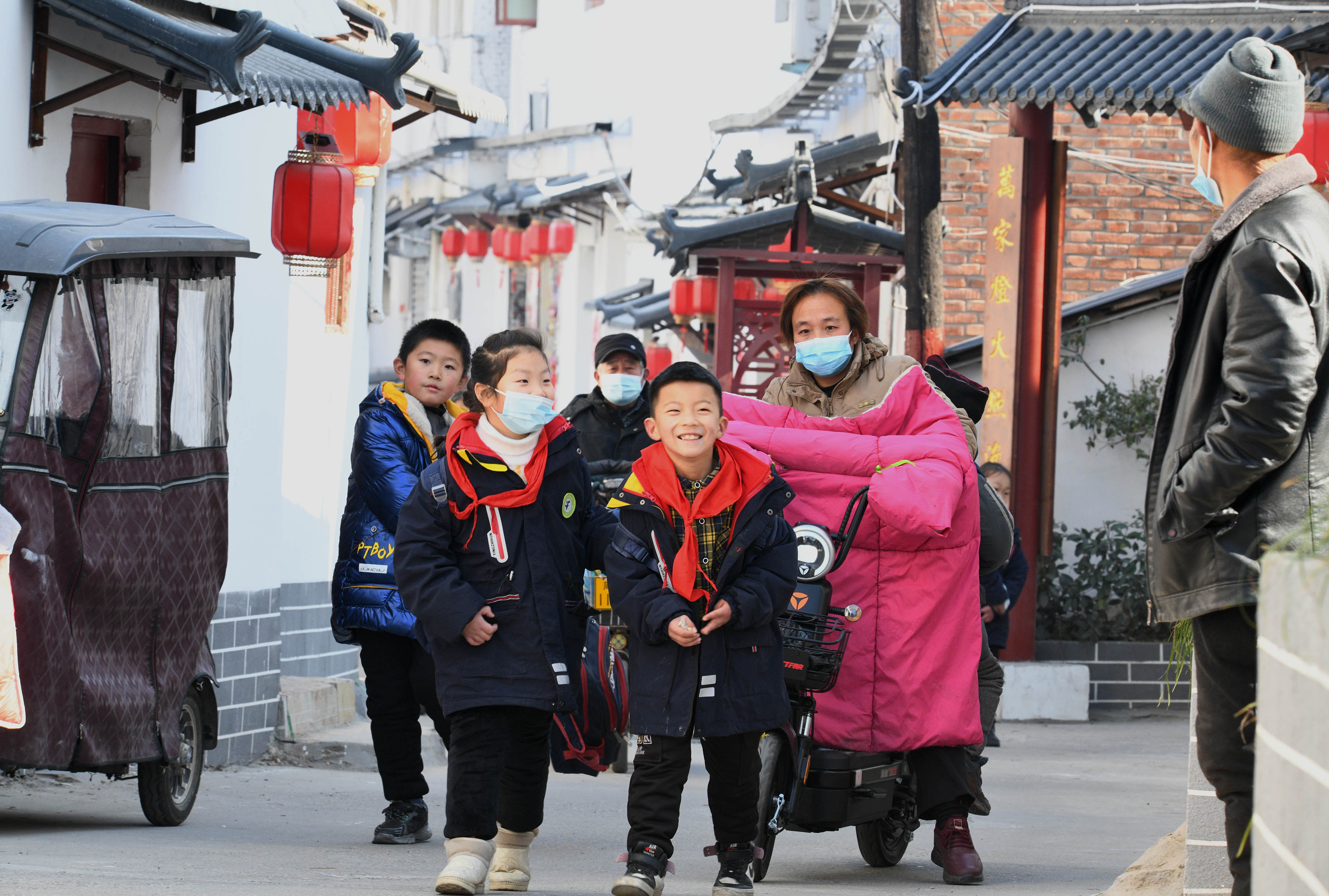 放學(xué)的孩子們開心地走在街上