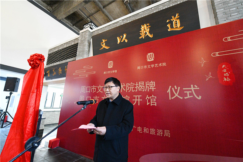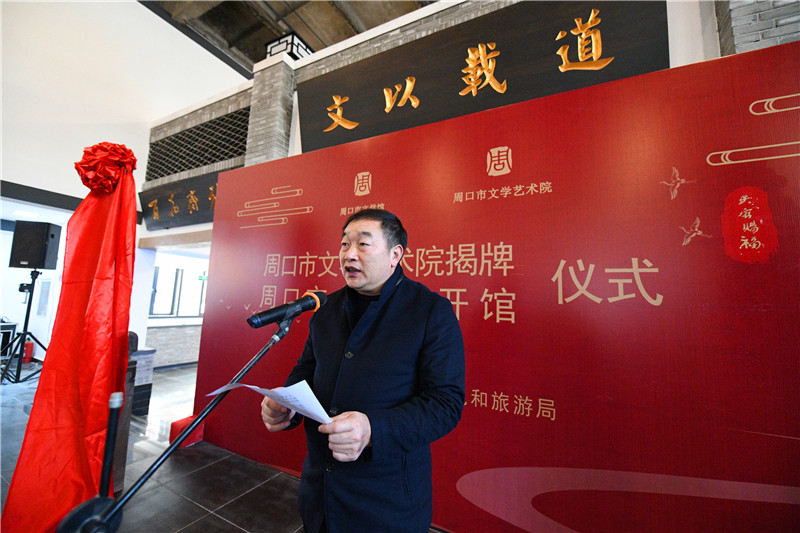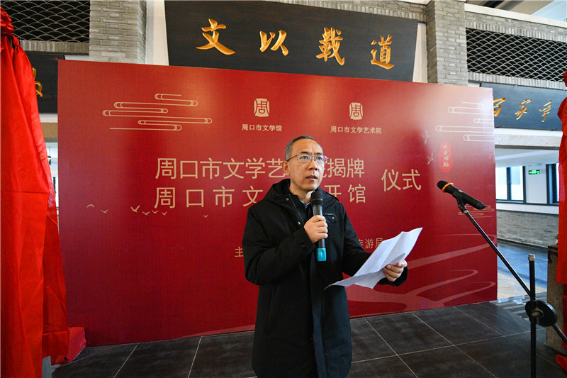 市文聯(lián)主席吳青峰在開(kāi)館儀式上宣讀賀信