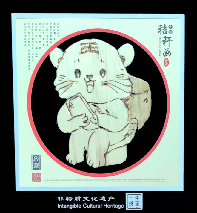 創(chuàng)作秸稈畫不易,傳承秸稈畫更為不易。針對秸稈畫等民間藝術(shù)的傳承問題,王春梅有著自己的看法?!耙獎?chuàng)新民間文化的時代內(nèi)涵。以我的秸稈畫為例,大部分還是停留在山水、花鳥、人物的創(chuàng)作上,應(yīng)該嘗試結(jié)合當(dāng)下‘90后’和‘00后’的個性需求,開發(fā)出適合該年齡段的卡通產(chǎn)品、動漫產(chǎn)品。同時在中小學(xué)開展的社會活動中,加入民間文化的相關(guān)內(nèi)容,定期舉辦各項展演和賽事,讓青少年參與其中,積極儲備后備力量?!蓖醮好氛f。