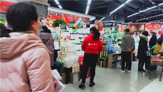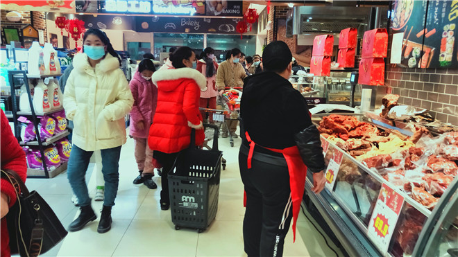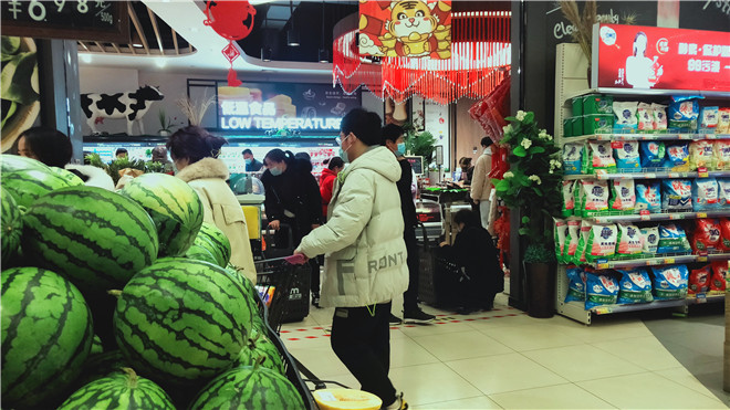春節(jié)將至,我市各大超市處處是濃濃的年味。1月26日,記者走進(jìn)我市中心城區(qū)各大超市發(fā)現(xiàn),超市內(nèi)熙熙攘攘,生鮮果蔬區(qū)域消費者尤多,絕大多數(shù)消費者自覺佩戴口罩。②11