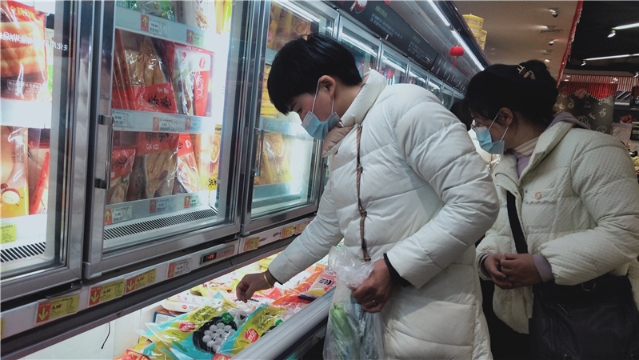?2月15日是元宵節(jié),湯圓占據(jù)中心城區(qū)各大超市的熱銷C位,各式袋裝湯圓擺滿冰柜。