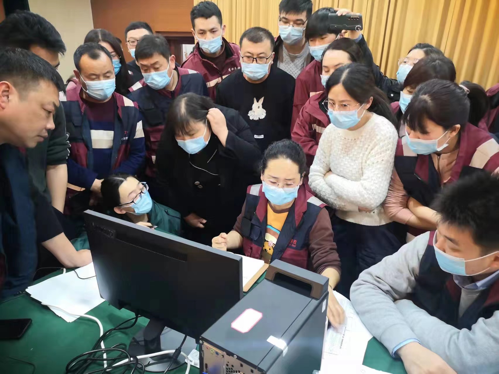 3月22日,突然收到了太康出現(xiàn)疫情的消息,袁倩來(lái)不及任何思考和準(zhǔn)備,火速前往單位集合趕赴太康疫情現(xiàn)場(chǎng)。此次袁倩承擔(dān)的任務(wù)是作為流調(diào)溯源信息組的組長(zhǎng),負(fù)責(zé)派發(fā)流調(diào)任務(wù)、向隔離轉(zhuǎn)運(yùn)專班推送密接和次密接人員名單、和公安對(duì)接去過(guò)風(fēng)險(xiǎn)場(chǎng)所的名單等工作。這是一個(gè)看似簡(jiǎn)單實(shí)則繁瑣的任務(wù),發(fā)揮著協(xié)調(diào)流調(diào)溯源專班內(nèi)部信息流轉(zhuǎn)以及對(duì)接其他專班的樞紐作用,關(guān)系到信息流轉(zhuǎn)的暢通和效率。她們必須隨時(shí)接收陽(yáng)性病例信息并第一時(shí)間完成任務(wù)派發(fā)和密接、次密接名單推送。睡眠不足、吃飯沒(méi)點(diǎn)、嗓子累啞成為工作常態(tài),絕大多數(shù)隊(duì)員是靠著金嗓子喉寶、西瓜霜含片在堅(jiān)持工作。她和同事們克服連續(xù)奮戰(zhàn)的苦與累之后,終于挖掘了所有病例、密接人員、次密接人員以及他們?nèi)ミ^(guò)的風(fēng)險(xiǎn)場(chǎng)所,第一時(shí)間切斷傳播途徑,遏制了疫情發(fā)展,最終為取得太康疫情的全面勝利作出了積極貢獻(xiàn)。