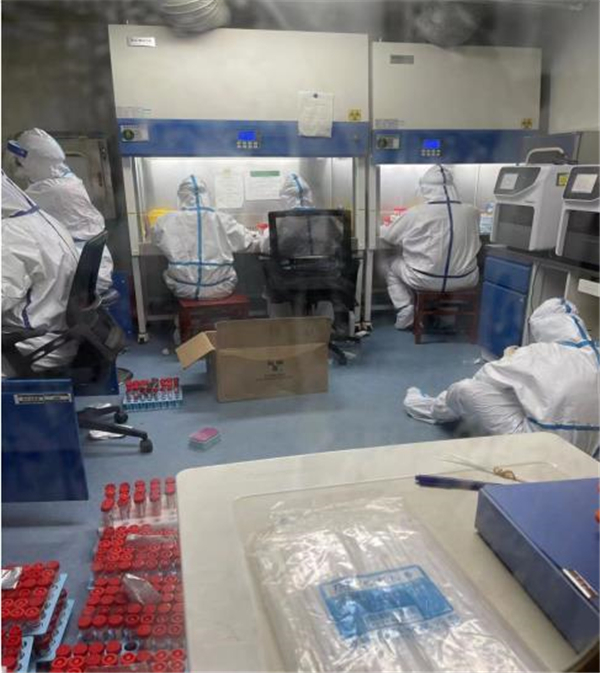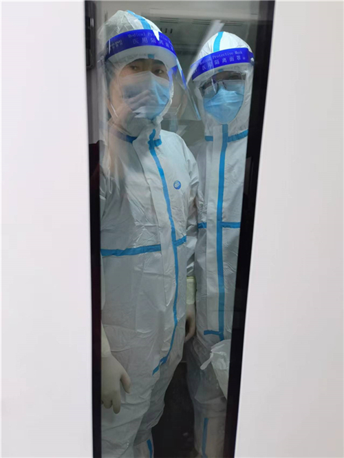 如果說有一座城叫眾志成城,那必定有一種力量叫檢驗(yàn)擔(dān)當(dāng)。在幾十平方米的實(shí)驗(yàn)室內(nèi),環(huán)境消毒、物資準(zhǔn)備、接收標(biāo)本、編號(hào)錄入、核酸提取、環(huán)境消殺、基因擴(kuò)增、結(jié)果研判、高壓消毒、信息上報(bào)、表格填寫、室內(nèi)質(zhì)控、室間質(zhì)評(píng)……每一個(gè)環(huán)節(jié)都需要嚴(yán)格規(guī)范操作,不放過任何一個(gè)細(xì)節(jié)、不能有一絲毫紕漏。在核酸檢測(cè)過程中,王健嚴(yán)格遵守生物安全制度,標(biāo)準(zhǔn)穿戴三級(jí)防護(hù)裝備,帽子、N95口罩、防護(hù)服、護(hù)目鏡、乳膠手套、隔離衣……一個(gè)也不能少。為以最快速度出具檢測(cè)結(jié)果,確保實(shí)驗(yàn)室安全,王健在低于標(biāo)準(zhǔn)大氣壓的負(fù)壓狀態(tài)下進(jìn)行工作。三級(jí)防護(hù)和大量檢測(cè)工作時(shí)常會(huì)使他出現(xiàn)汗流浹背、呼吸不暢、頭痛等缺氧癥狀,對(duì)體力是一個(gè)極大挑戰(zhàn)。但他總能克服這些困難,不辜負(fù)黨和人民的期望,在抗擊新冠肺炎疫情的戰(zhàn)場(chǎng)上勇?lián)姑_鋒在前,為人民群眾筑起生命健康的第一道防線!