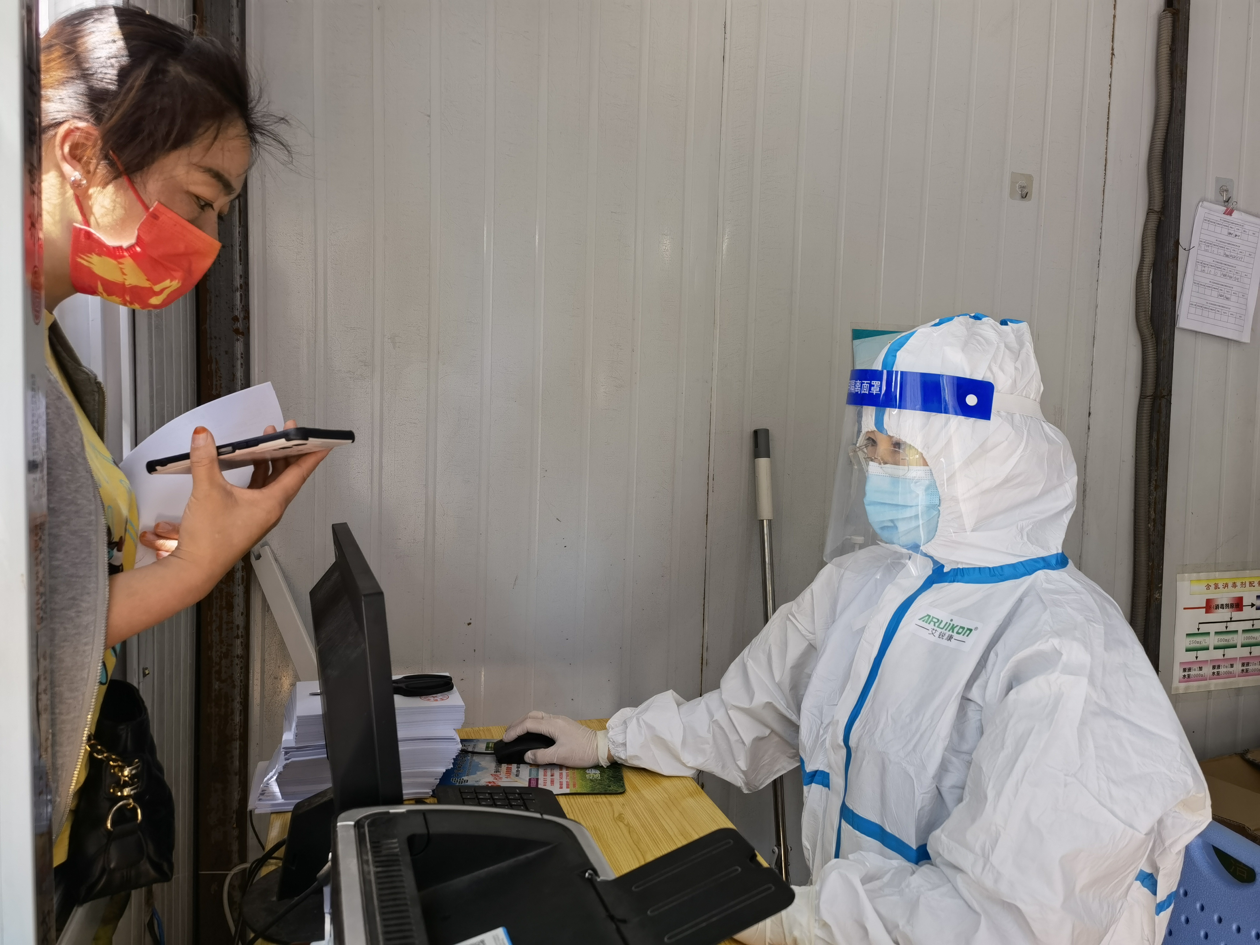 5月4日,記者在周口東新醫(yī)院核酸檢測(cè)點(diǎn)見(jiàn)到了全副“武裝”的王琳,她坐在核酸檢測(cè)點(diǎn)的核酸檢測(cè)報(bào)告打印崗位上,身穿防護(hù)服,認(rèn)真細(xì)致為需要幫助的群眾打印報(bào)告。“大到車(chē)輛安排,小到口罩發(fā)放、體溫計(jì)調(diào)配等防護(hù)物資保障都要協(xié)調(diào)統(tǒng)籌,一刻也不能停歇,我就想著別有什么地方落下了。安排好一切后,我回到醫(yī)院,同事們都前往全員核酸檢測(cè)一線了,這里人手不太足,我頂上。做好后勤保障工作,解決一線醫(yī)護(hù)人員的后顧之憂是我的責(zé)任和義務(wù)?!蓖趿照f(shuō)。