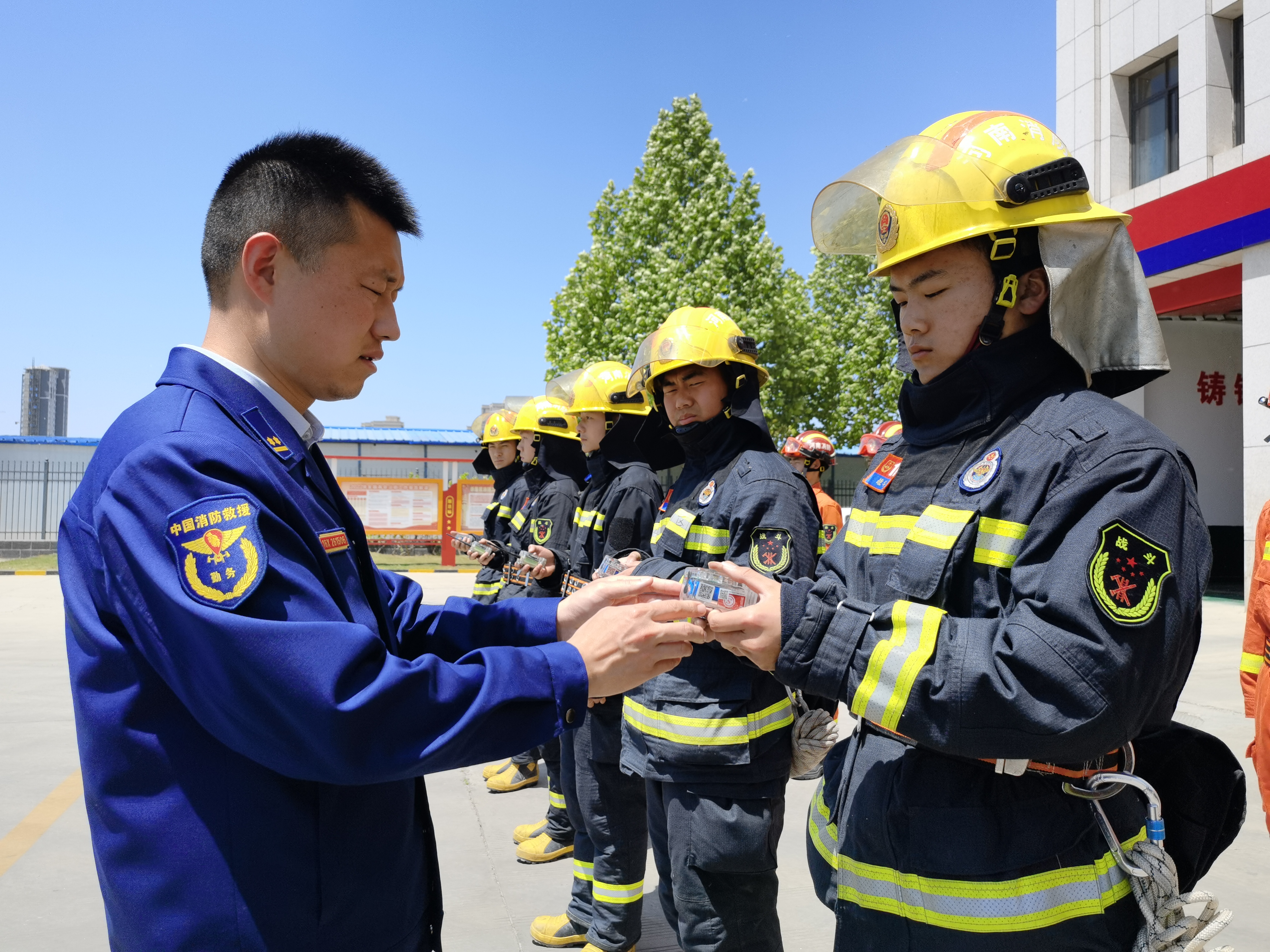 全封閉管理、備戰(zhàn)狀態(tài),檢查裝備、養(yǎng)護(hù)車(chē)輛,給消防救援人員上課……5月4日,示范區(qū)消防救援站指導(dǎo)員欒慶帥站在烈日下為消防救援隊(duì)員講授專(zhuān)業(yè)救援技巧和專(zhuān)業(yè)工具使用方法。