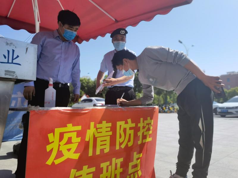 姬祥(左一)在疫情防控值班點(diǎn)