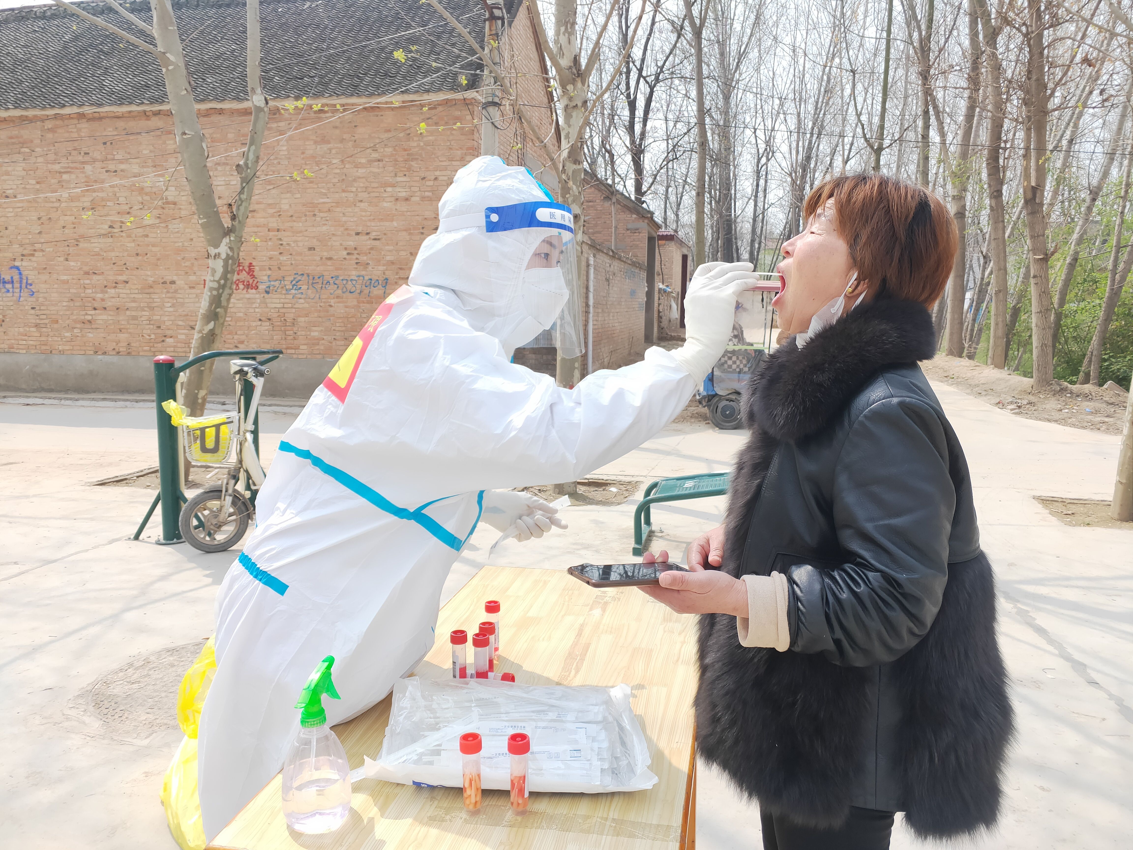王文文和同事們于當(dāng)日早7點到達太康廣場進行培訓(xùn)。培訓(xùn)結(jié)束后,在對接人的引領(lǐng)下,王文文帶領(lǐng)分隊46人前往太康縣張集鎮(zhèn)開展支援工作,主要負責(zé)張集鎮(zhèn)15個自然村,每日對近2萬名群眾進行核酸采集,他們分為15個組,一組負責(zé)一個采集點。第一天大家都沒有經(jīng)驗,工作中,王文文不時接到其他組隊員的咨詢電話,王文文詳細地為他們一一解答,保證工作順利開展。