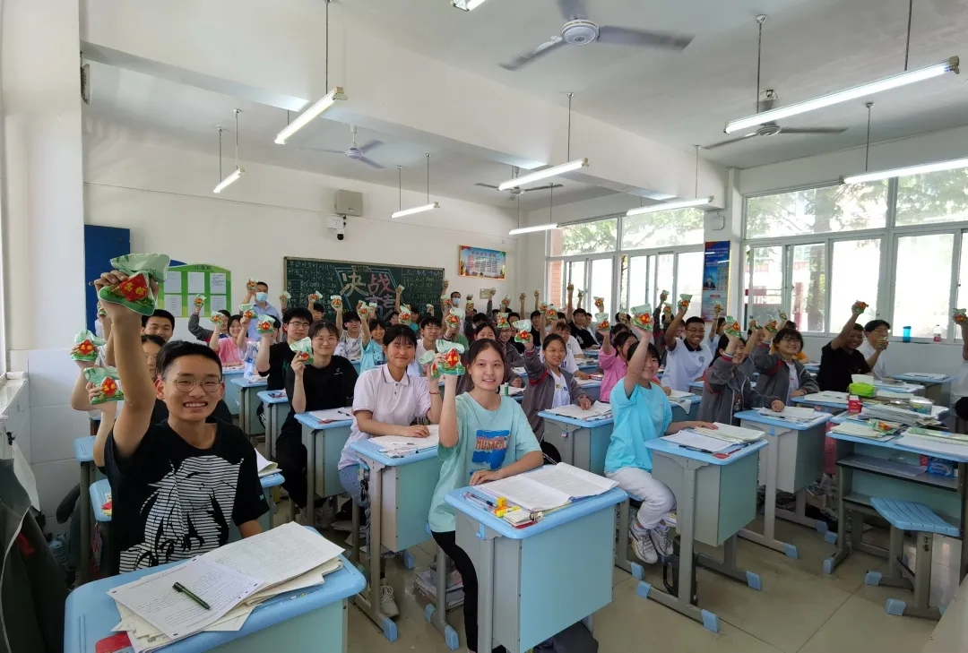 小小粽子,深深情誼。同學(xué)們接過粽子,滿懷感恩,臉上洋溢著喜悅的笑容。老師們還將粽子掛在教室門口,同學(xué)們離開教室時(shí)輕快跳起,用頭頂粽子,寓意“一定高中”,中午就餐時(shí)間,熱氣騰騰的粽子讓同學(xué)們通過舌尖上的美味感知傳統(tǒng)文化魅力,在愉悅的氛圍中煥發(fā)昂揚(yáng)斗志,實(shí)踐青春誓言。