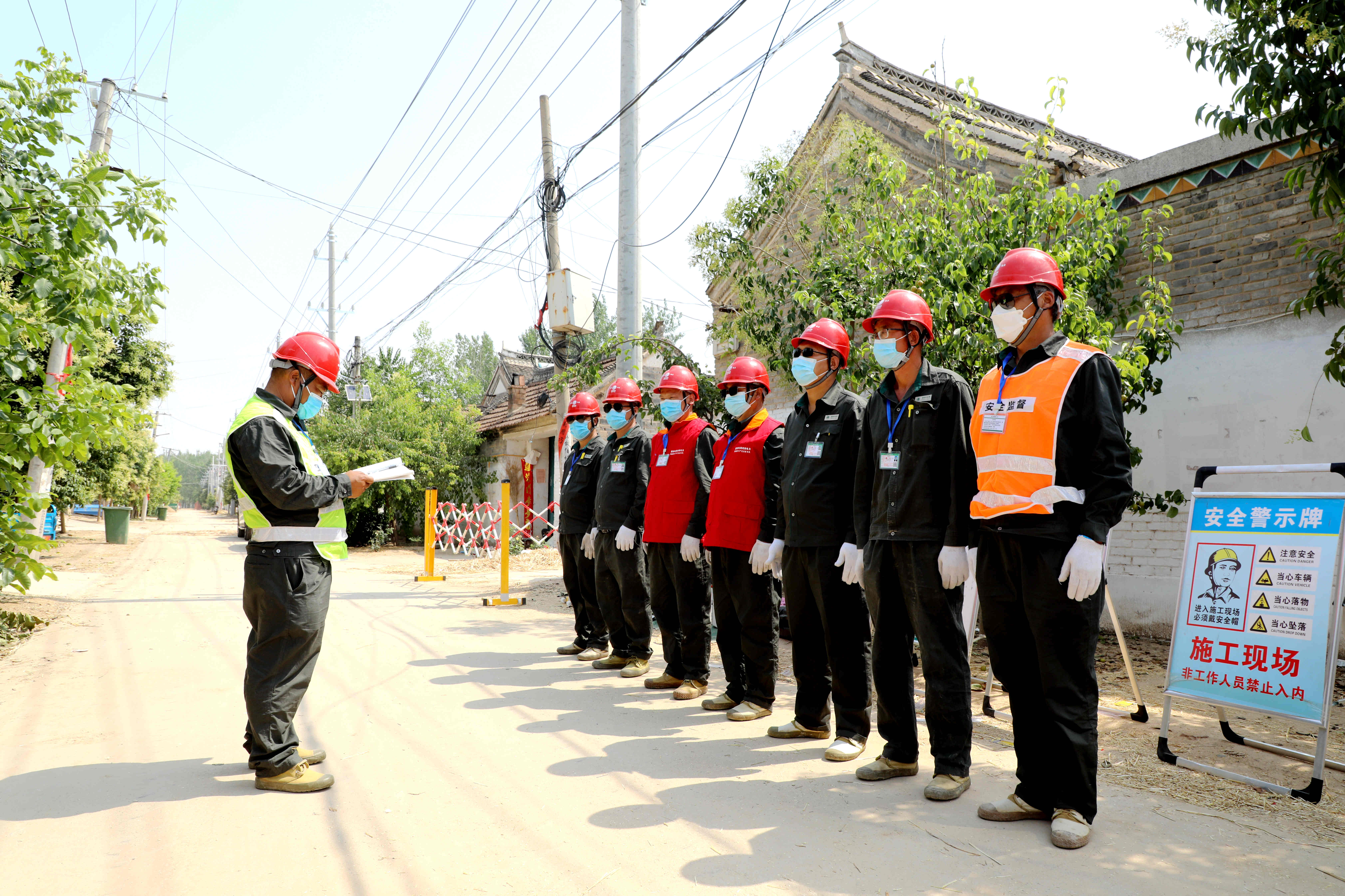 6月9日,在西華縣皮營鄉(xiāng)齊莊行政村潭張1號臺區(qū)施工現(xiàn)場,國網(wǎng)西華縣供電公司組織焦裕祿共產黨員服務隊帶領施工人員分工協(xié)作、高效配合,安裝電表箱、更換下戶線、增容變壓器、新建低壓線路。