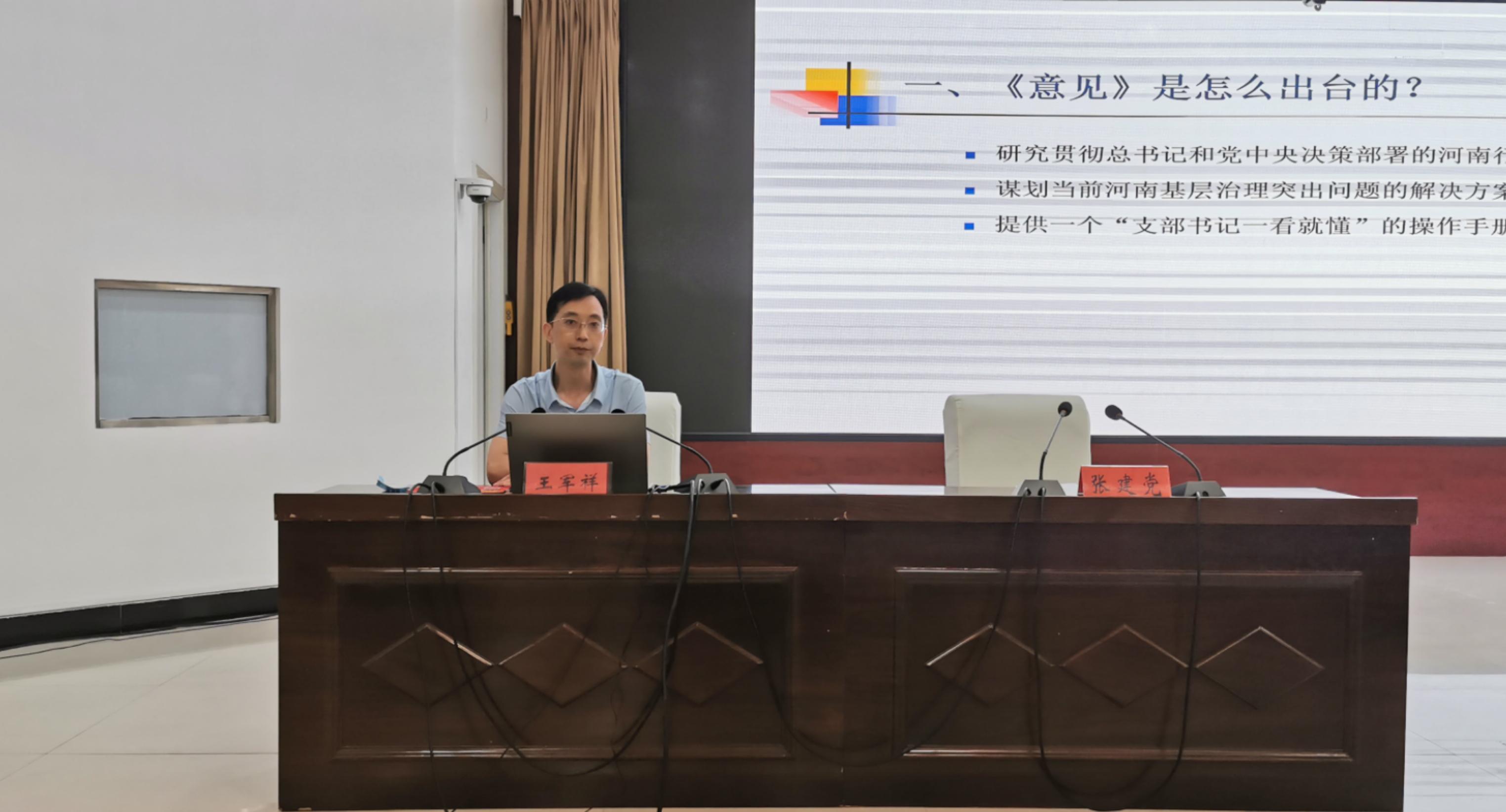 8月7日下午,周口市淮陽區(qū)在淮陽區(qū)委黨校召開“五星”支部創(chuàng)建工作專題輔導培訓會議,會議特邀省委組織部組織二處處長王軍祥同志做專題輔導?;搓枀^(qū)四大班子領(lǐng)導,全區(qū)“五星”支部創(chuàng)建工作牽頭單位,責任單位主要負責人及分管副職、各鄉(xiāng)鎮(zhèn)(街道)黨(工)委書記參加現(xiàn)場培訓會。
