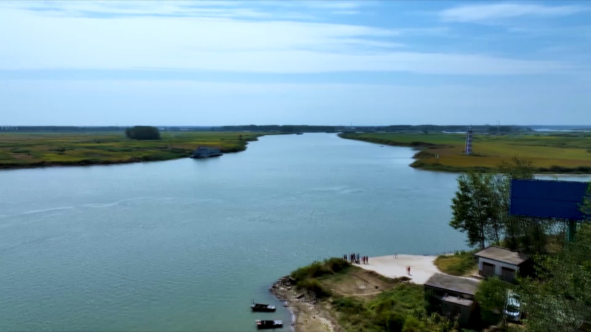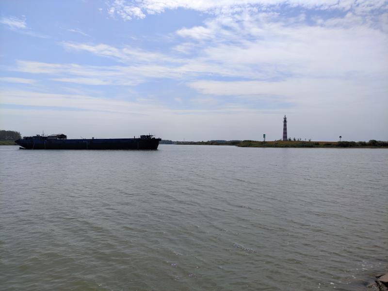 9月21日19時(shí)許,豫貨出海、“周”向世界——周口六條貨運(yùn)集裝箱航線大型異地采訪活動(dòng)采訪組一行在堤岸下的農(nóng)田中穿行,終于到達(dá)沫河口?;璋档囊股?,采訪組成員望著寬闊的河道,隱隱如山的貨輪伴著引擎的轟鳴聲緩緩駛過,僅有的點(diǎn)點(diǎn)燈光來自對(duì)岸海事部門的檢查站。沫河口岸邊,一些房屋久棄不用,黑洞洞的窗口像一張張大嘴,仿佛在訴說著村莊久遠(yuǎn)的歷史。
