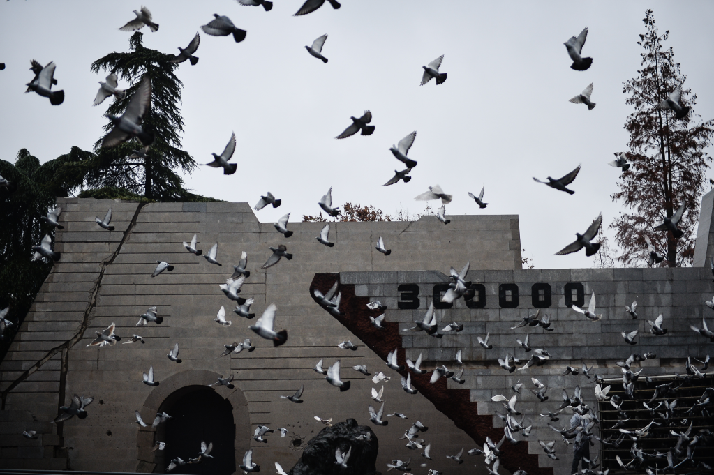 2016年12月13日,南京大屠殺死難者國家公祭儀式上放飛和平鴿。新華社記者 李響 攝