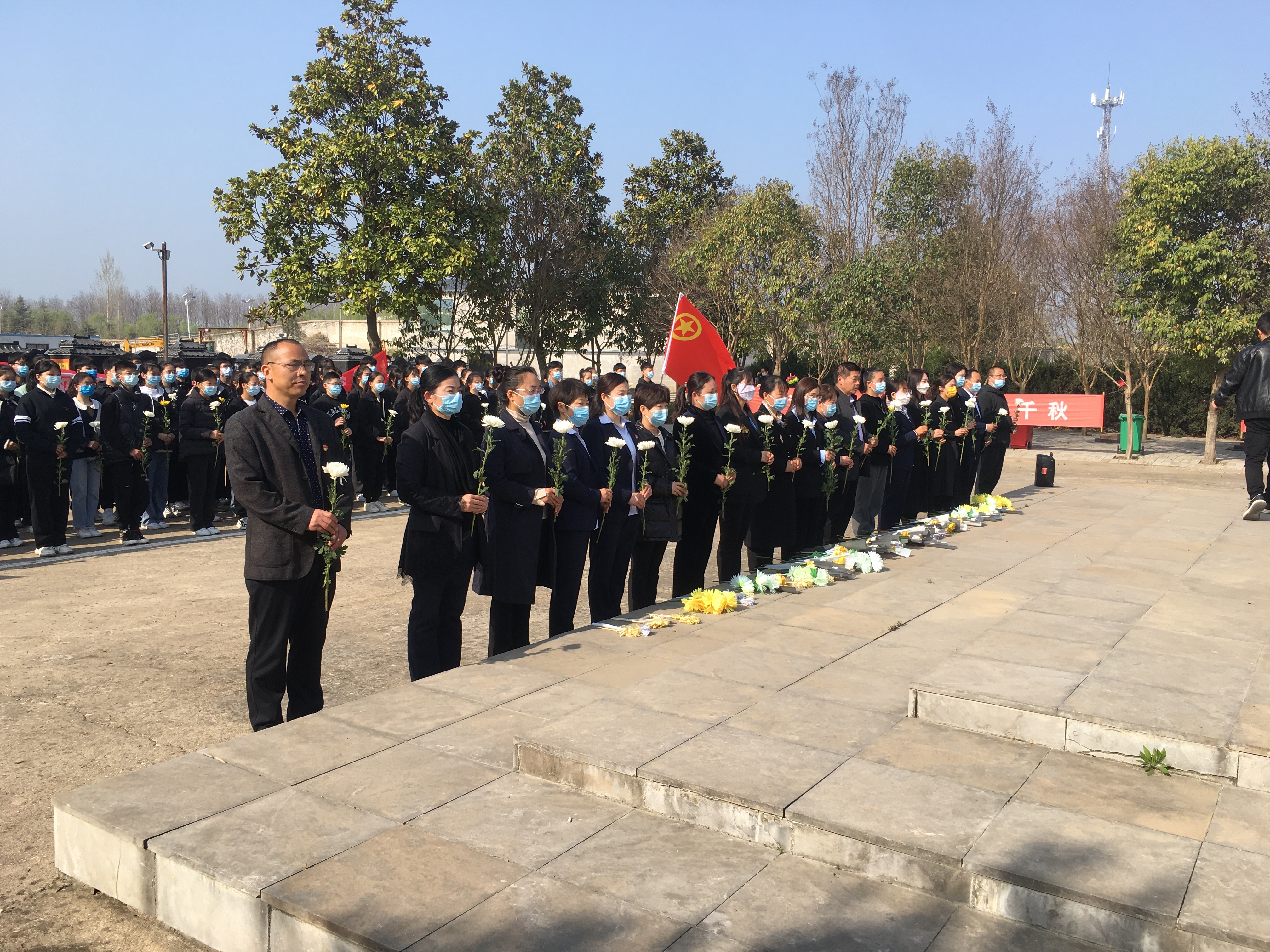 青山埋忠骨,史冊載功勛。商水縣烈士陵園廣場,學生們排著整齊的隊伍,莊嚴肅穆。學生代表向烈士紀念碑敬獻花籃,在墓前同學們低頭致哀,全體人員進行三鞠躬表達對革命烈士的深切緬懷。學生代表向革命烈士獻詞,該校副校長王政華向同學們講述了烈士事跡,希望同學們能夠秉承先烈遺志,弘揚英雄精神,志存高遠,成長為棟梁之材。