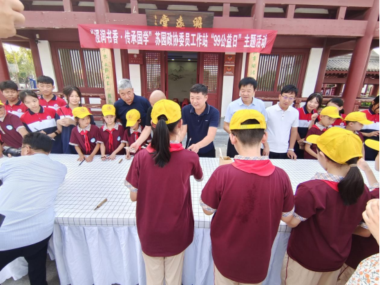 本次活動(dòng),特邀劉氏毛筆制作技藝第六十七代傳承人劉永杰現(xiàn)場講解和演繹毛筆的制作過程,40多名中小學(xué)生親身體驗(yàn),親手制作,更深一步了解毛筆的制作工序,讓毛筆制作技藝不斷發(fā)揚(yáng)光大,讓非遺文化不斷的傳承下去,激勵(lì)學(xué)生們寫好中國字,做好中國人。委員們和學(xué)子們?cè)诜沁z傳承人的指導(dǎo)下,共同制作“蘇園狀元筆”。