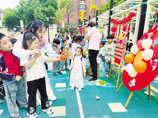 中秋節(jié)前夕,市城鄉(xiāng)一體化示范區(qū)各幼兒園積極組織開展形式多樣、內(nèi)容豐富的慶?;顒樱寣W生沉浸式感受中華優(yōu)秀傳統(tǒng)文化的獨特魅力。圖一為老師帶領(lǐng)小朋友體驗“后羿射日”游戲。