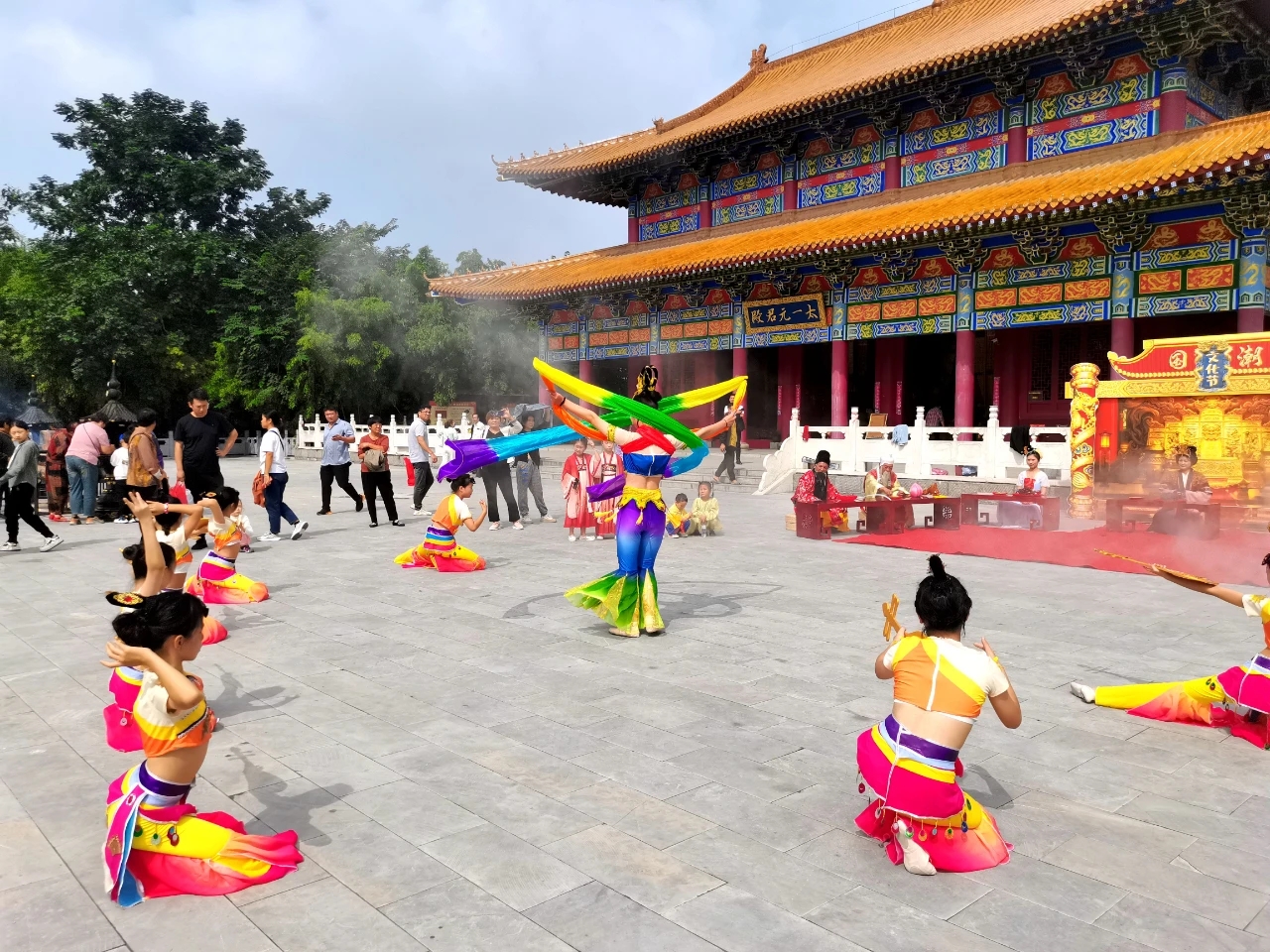 在太極殿前,一場(chǎng)場(chǎng)精彩的文藝匯演迎來(lái)熱烈的掌聲,歌曲、評(píng)書、雙簧、薩克斯走秀等節(jié)目齊聚一堂,呈現(xiàn)出百家爭(zhēng)鳴之勢(shì),將節(jié)目推向高潮。
