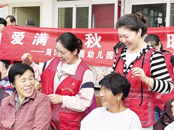 10月10日上午,周口市文昌幼兒園黨支部30余名黨員志愿者來(lái)到川匯區(qū)城南街道綜合養(yǎng)老中心,開(kāi)展“愛(ài)滿金秋 情暖重陽(yáng)”志愿服務(wù)活動(dòng)。志愿者向老人送去慰問(wèn)品,并表達(dá)對(duì)老年人的美好祝福。