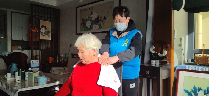 “打掃得真干凈。俺閨女說(shuō),以后不讓我打掃家里的衛(wèi)生了,你們一個(gè)星期來(lái)一次就行?!痹诮I(yè)社區(qū),剛享受過(guò)護(hù)理員按摩服務(wù)的75歲的趙阿姨說(shuō)。
