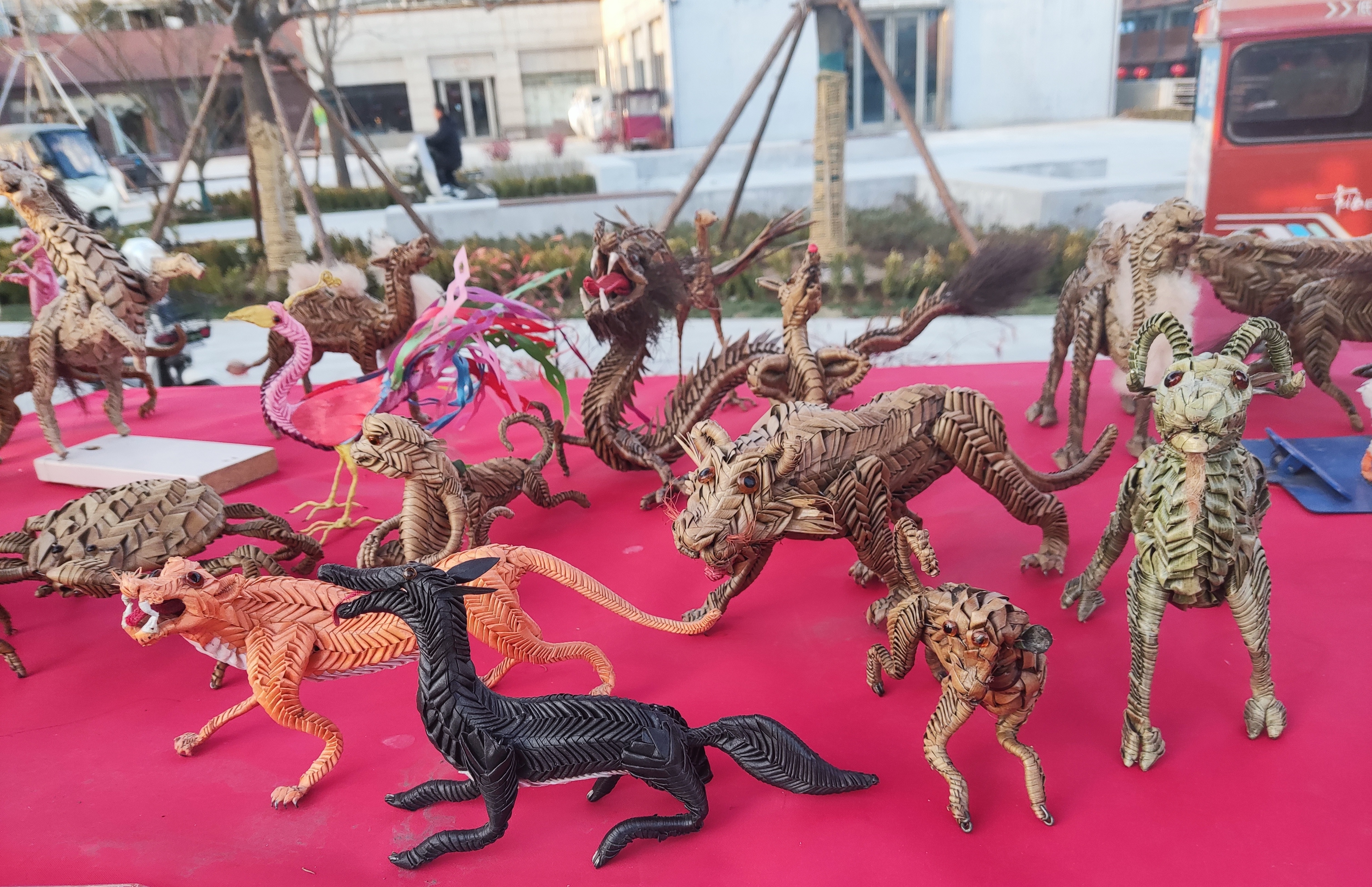 棕編、草編、面塑、糖人、泥泥狗、布老虎……“古風(fēng)集市”上,千姿百態(tài)的民俗作品,烘托出充滿文化氣息的年味兒。