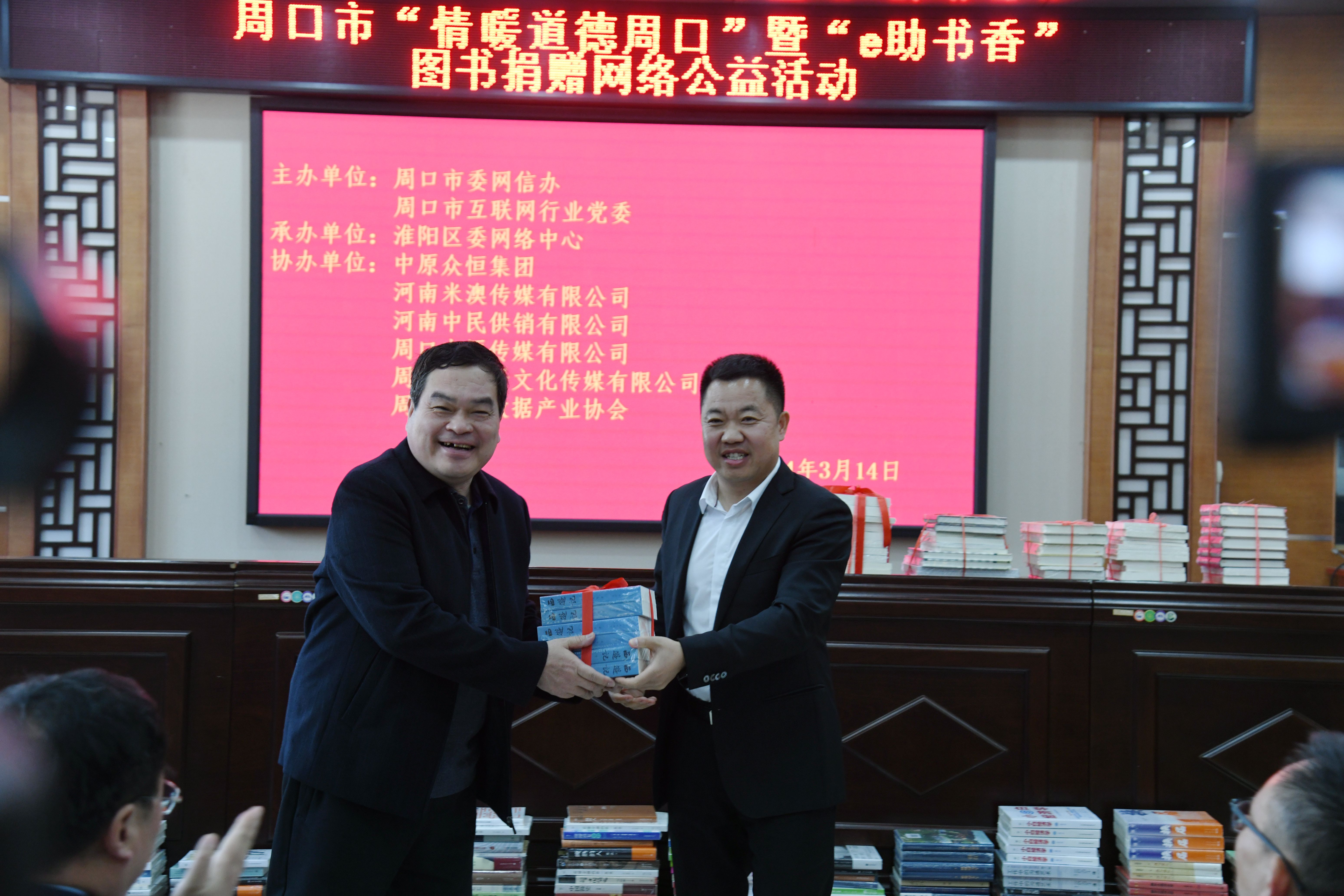 3月11日上午,第二屆周口伏羲書展在淮陽開幕。在開幕式的捐贈環(huán)節(jié),中原越秀實(shí)業(yè)有限公司董事長、越秀豐廚(周口)食品科技有限公司董事長李玉平向周口市中小學(xué)校捐贈圖書300萬元碼洋(價(jià)值300萬元約6萬冊圖書)。