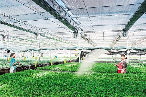 連日來,河南農(nóng)業(yè)大學(xué)扶溝蔬菜研究院的工作人員多次為蔬菜種苗噴水降溫。為降低高溫對(duì)蔬菜種苗造成的不利影響,該院采取多種措施為大棚降溫,保證蔬菜種苗健康成長(zhǎng)。谷志方 攝