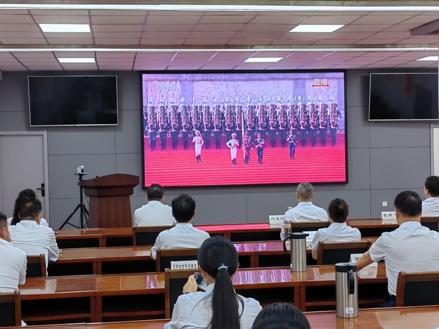 收看過程中,大家心情澎湃,感慨萬千?,F(xiàn)場氣氛莊重而熱烈,大家全神貫注,聆聽習(xí)近平總書記重要講話,滿懷激動與自豪的觀看閱兵儀式的全過程。當(dāng)威武雄壯的三軍儀仗隊(duì)邁著鏗鏘有力的步伐率先通過天安門廣場時,當(dāng)一個個裝備方隊(duì)展示著彰顯國家實(shí)力的現(xiàn)代化尖端武器時,當(dāng)戰(zhàn)機(jī)梯隊(duì)以恢宏陣勢呼嘯掠過蒼穹時,大家內(nèi)心迸發(fā)出由衷的贊嘆,為祖國日益強(qiáng)盛而自豪。