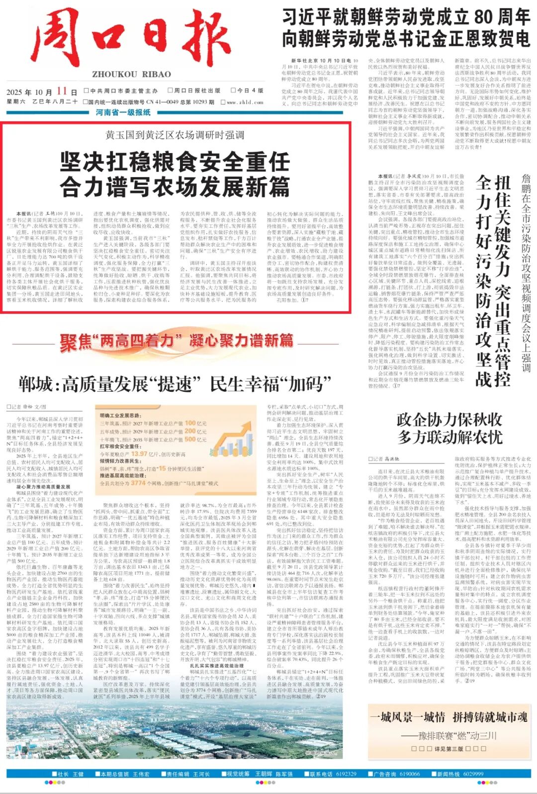 10月10日,市委書記黃玉國到黃泛區(qū)農場調研“三秋”生產、農場改革發(fā)展等工作。