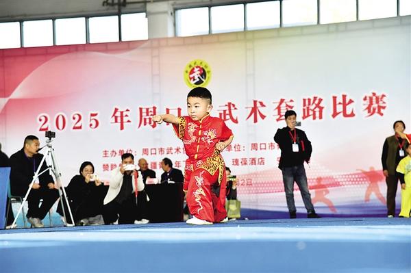 11月1日上午,小朋友展示長(zhǎng)拳。當(dāng)日,由周口市武術(shù)協(xié)會(huì)主辦、周口市體育中心協(xié)辦的“2025年周口市武術(shù)套路比賽”在周口市體育中心開(kāi)賽,來(lái)自全市不同武術(shù)門(mén)派和拳種的43支代表隊(duì)的千名武術(shù)愛(ài)好者參與套路、器械等比賽,他們的扎實(shí)功底和不同風(fēng)格的拳術(shù)展示贏得陣陣喝彩,展示了我市武術(shù)發(fā)展的成果。記者 梁照曾 攝
