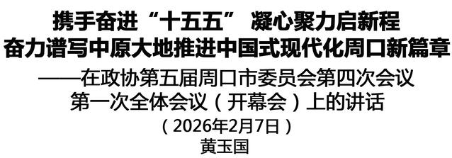 在“十四五”勝利收官、“十五五”開局起步的關(guān)鍵時(shí)期,政協(xié)第五屆周口市委員會(huì)第四次會(huì)議隆重開幕了。這是全市人民政治生活中的一件大事,是廣納群言、廣集眾智、共謀發(fā)展的一次盛會(huì)。在此,我代表中共周口市委,向大會(huì)的召開表示熱烈祝賀,向全體政協(xié)委員和與會(huì)同志致以誠(chéng)摯問候!
