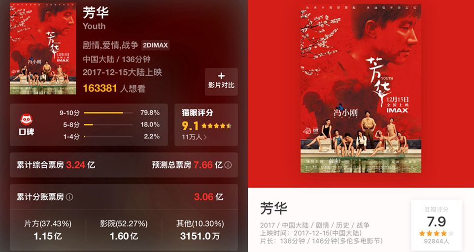 國慶檔因為片子太多,除了《羞羞的鐵拳》遙遙領先外,口碑不錯的《英倫對決》、《追龍》、《縫紉機樂隊》的票房都遭到了擠壓。熱度很高的《空天獵》也一樣。最終,這五部電影的票房分別是20.07億、5.38億、5.75億、4.57億、3.18億?!?a href="http://m.hotmeol.com/content/2017-12/18/content_604326.htm" target="_blank" >[詳細]